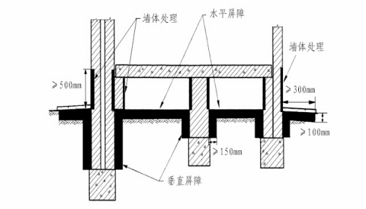 水平屏障指通过白蚁防治药物处理房屋底板下和周边水平方向的土壤,防止白蚁从垂直方向侵入房屋。
