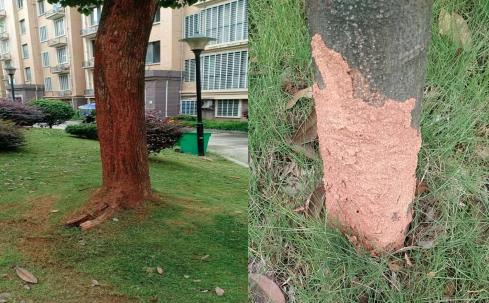 园林白蚁防治:园林和城市行道树木,用诱杀法能成功消灭白蚁巢。